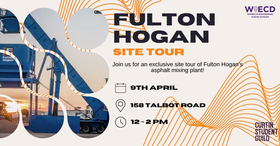 Fulton Hogan is a leading asphalt supplier, providing complete solutions from design 👩🏻‍💻to construction 🏗️ . This site tour takes you inside their production and technical facilities, where cutting-edge processes ensure high-performance asphalt tailored to diverse infrastructure needs. They will be sharing with you more about their company overview and graduate/internship opportunites. 📝 You will also get the chance to network with engineers👷🏻👷🏻‍♀️ on site and learn more about their day-to-day job🤔.  *Highly recommended for engineering and construction management students interested in materials, infrastructure, and project management*  🕛 3 Weighted Logbook Hours 📆 12-2pm, Wednesday 9th April (Common Free Time) 📍158 Talbot Road (Please follow our instagram or facebook for venue updates)  *Please wear your safety boots to the venue.  Note: Please arrange your own transportation as it's outside of Curtin University
